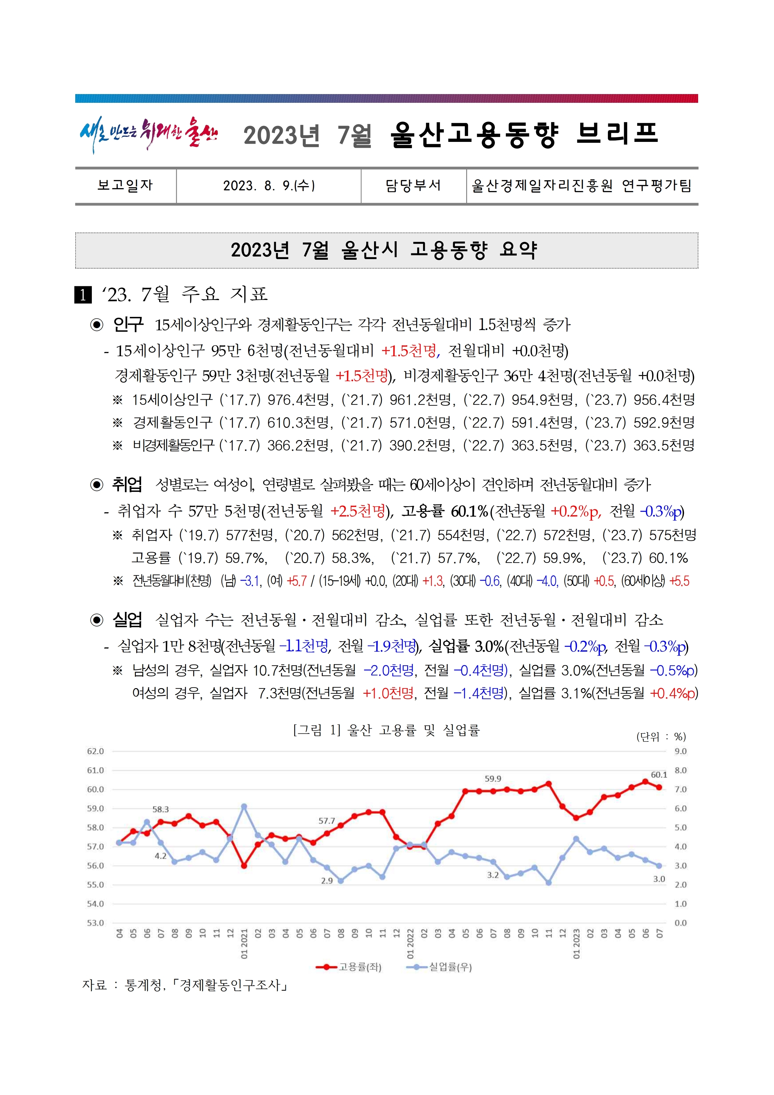 ■ 제목: 울산고용동향 브리프(2023년 7월호)