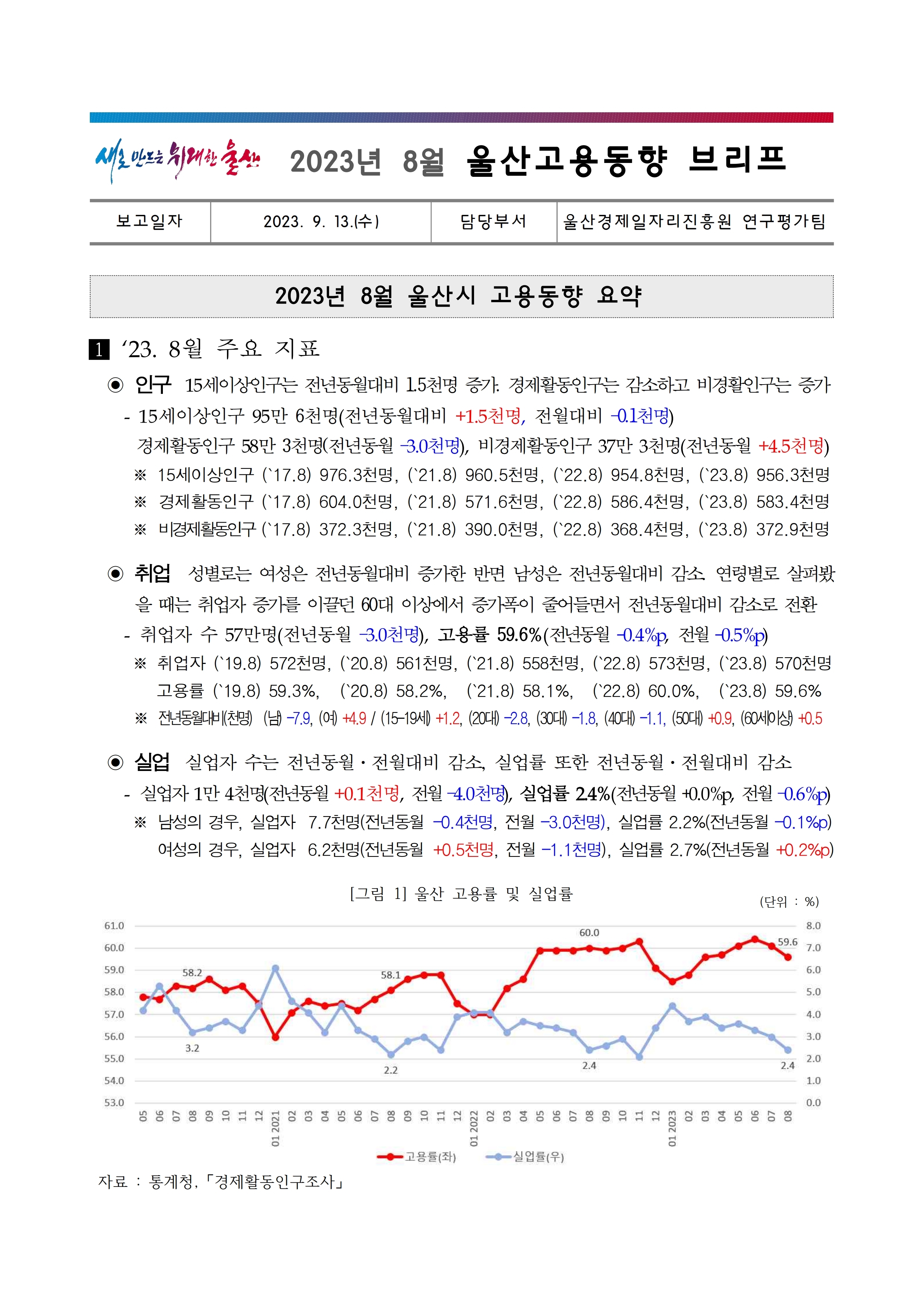 ■ 제목: 울산고용동향 브리프(2023년 8월호)