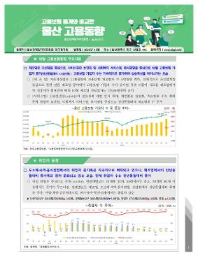 [울산일자리재단] 정책연구 > 간행물 > 고용보험동향 - 번호, 제목, 조회수, 첨부파일, 작성일자 제공 표