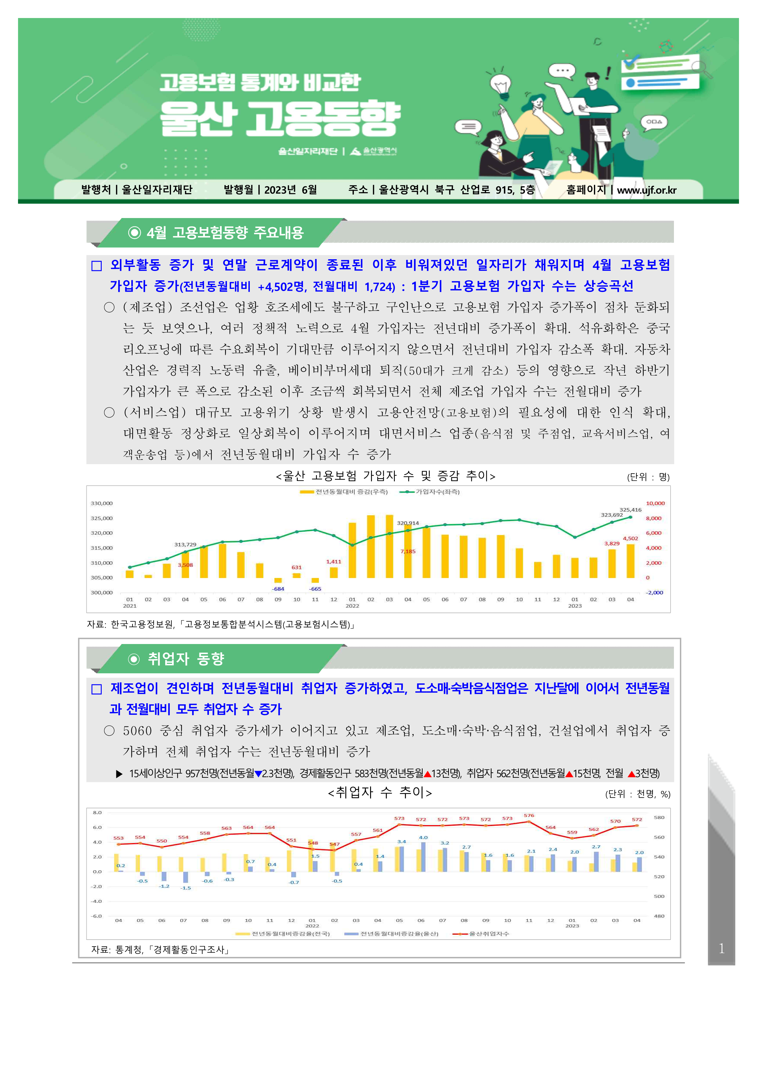 ■ 보고서명: 월간 울산고용보험동향(2023년 4월호)