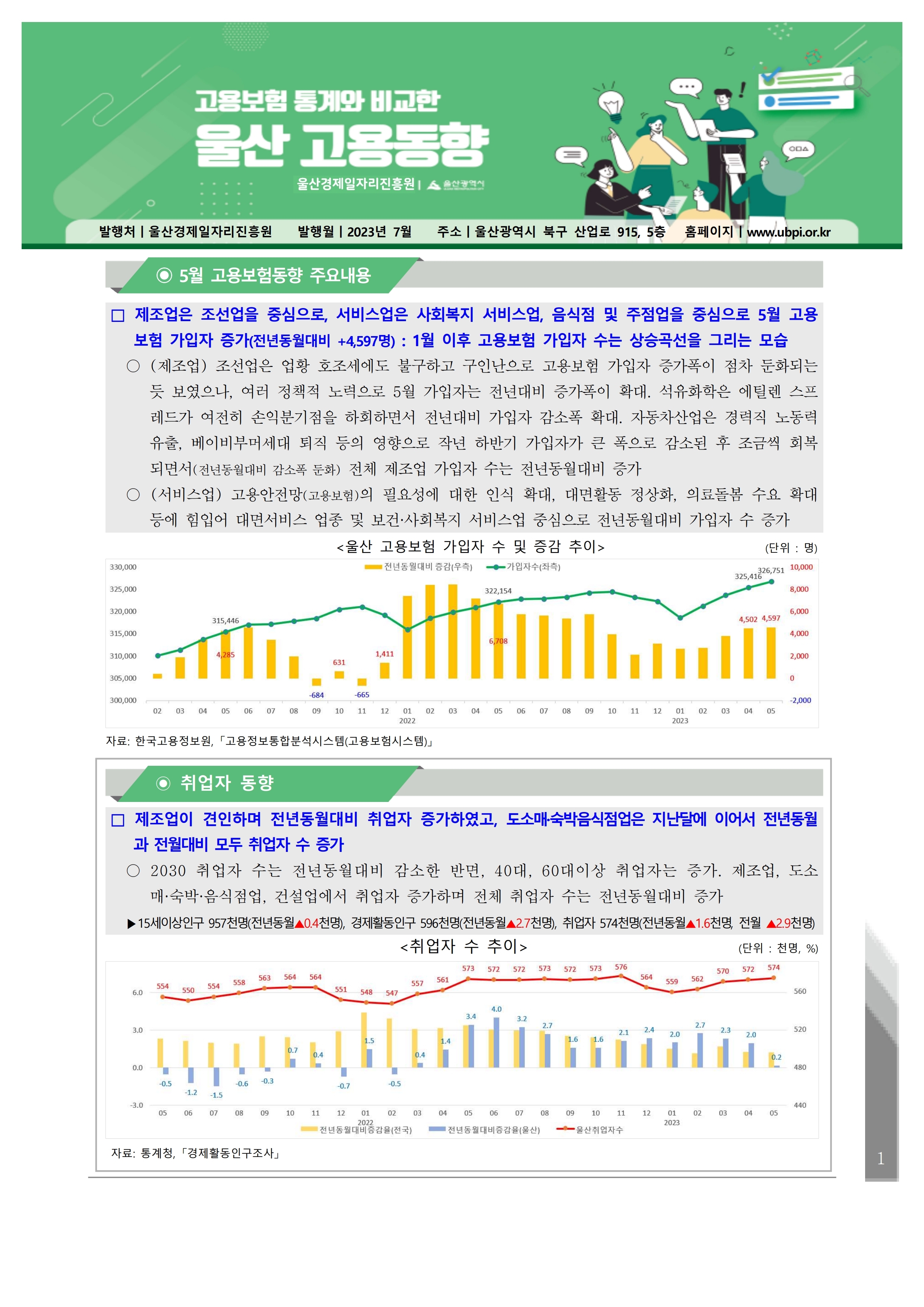 ■ 보고서명: 월간 울산고용보험동향(2023년 5월호)