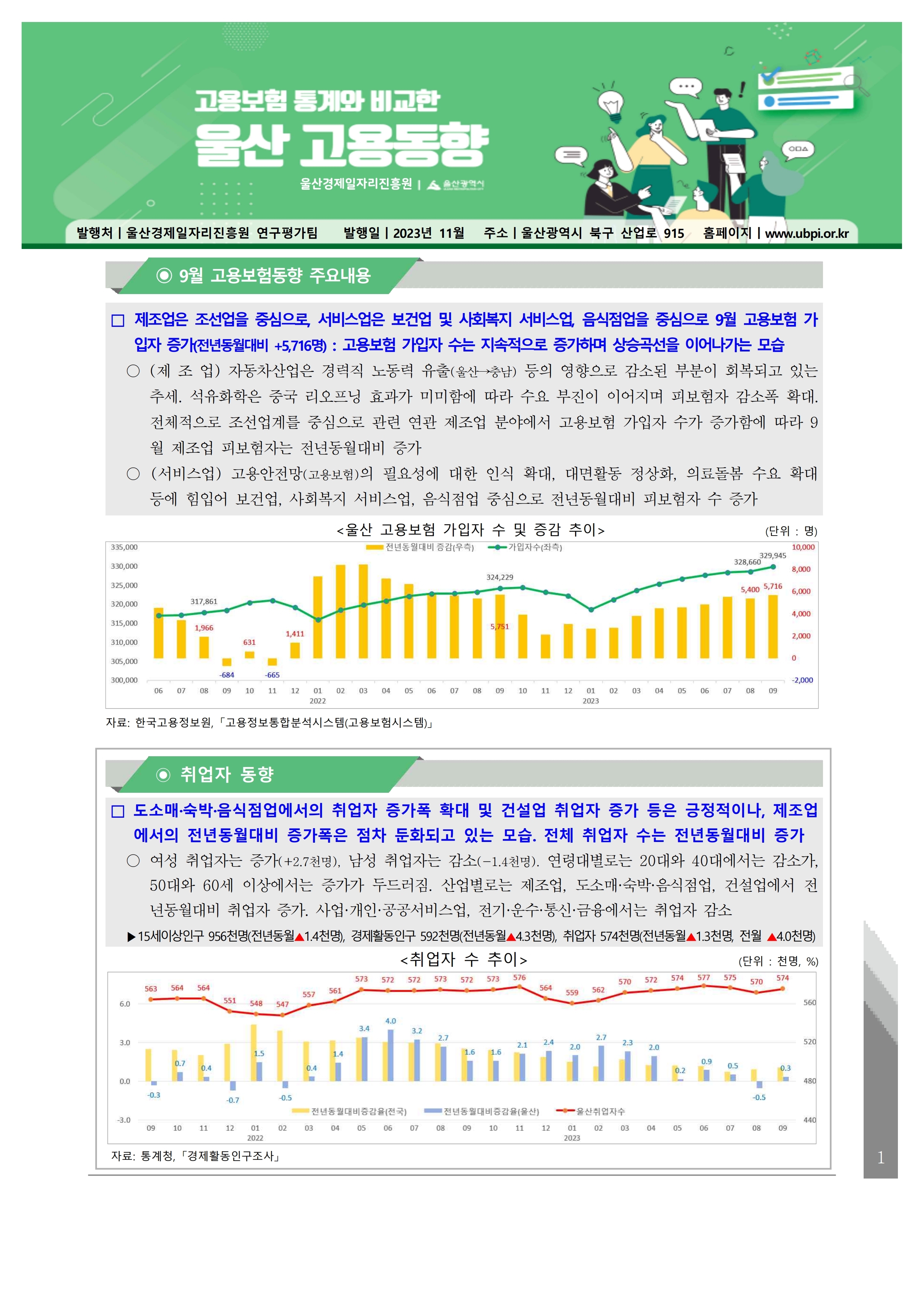 ■ 보고서명: 월간 울산고용보험동향(2023년 9월호)